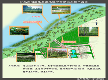 总占地面积50公顷,其中湖滨湿地缓冲带10公顷,种植湿地植物196万株;生态防护带40公顷,包括固沙草地20公顷,栽植当地优势乔木8万株,灌木8万株。